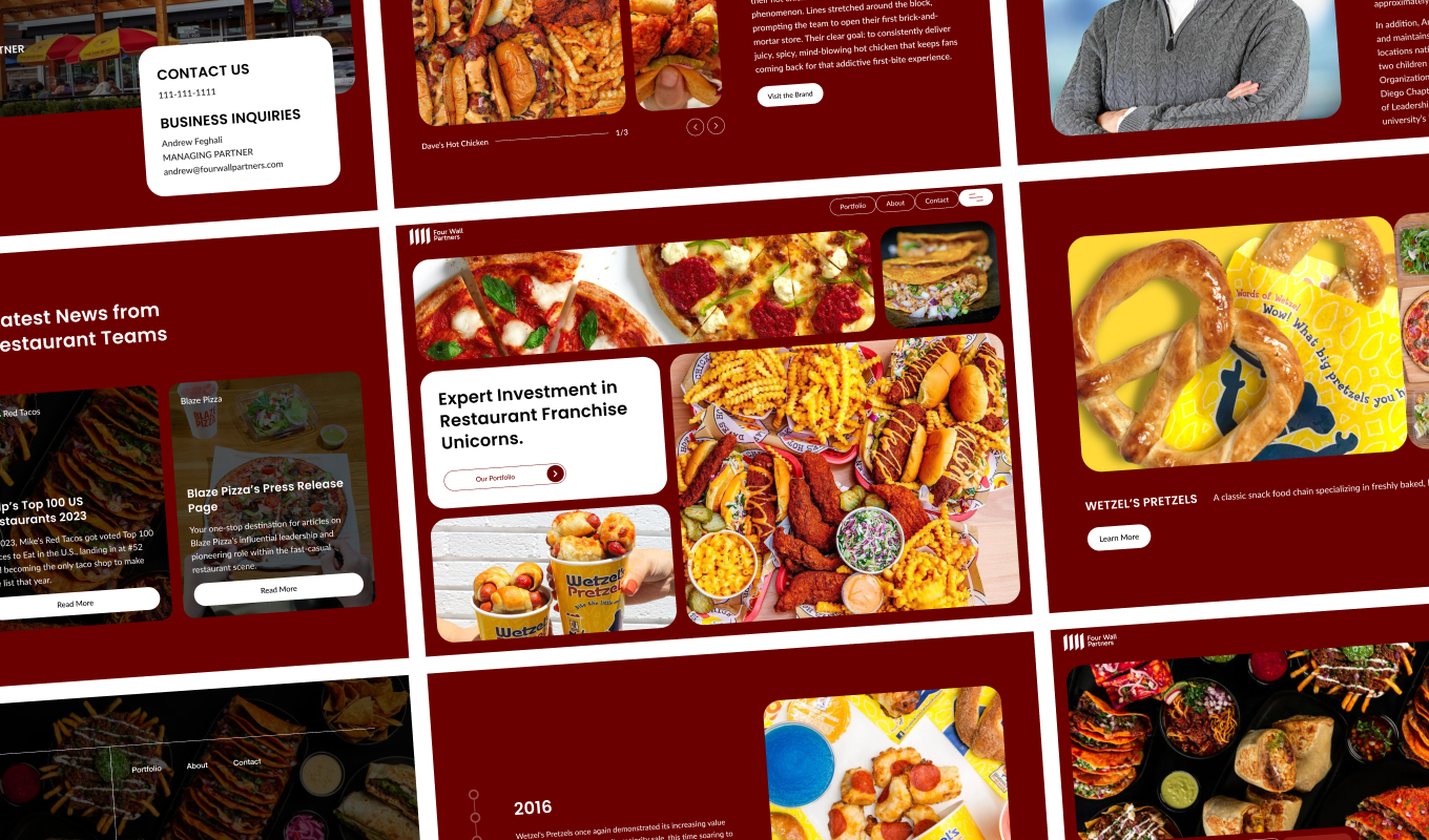 Ankord Media partnered with Four Wall Partners to establish a powerful brand identity for their unique position in the culinary investment sector. Our work involved comprehensive branding, meticulous logo design, and expert website development. The core objective was to create a compelling brand that clearly showcased their role as a financial firm specializing in restaurant investment and franchise development. We focused on building a robust online presence designed specifically to attract both restaurant owners seeking to expand into franchises and potential investment partners. A unique strength of this project was the seamless integration of stunning, high-quality visuals and photos from their diverse restaurant portfolio, lending authenticity and appeal to their financial expertise.
